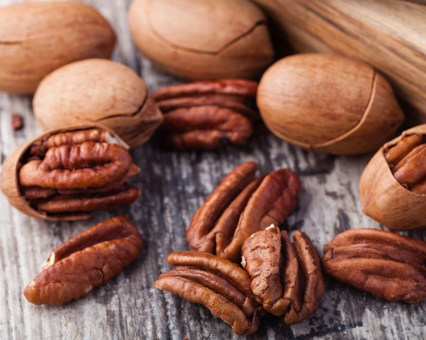 Der Pekannussbaum ist in Nordamerika beheimatet und gehört zur Familie der Walnussgewächse. Die schmackhaften Nüsse wurden bereits von den Ureinwohnern Amerikas hoch geschätzt, da sie sowohl fettreich sind, als auch Mineralien und Vitamine enthalten und zudem gut lagerfähig sind.